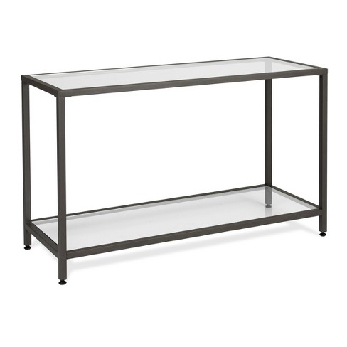 Kandin Metal Console Table With Glass Top Pewter Black 2kfurniture from 2kfurnituredesigns.com
